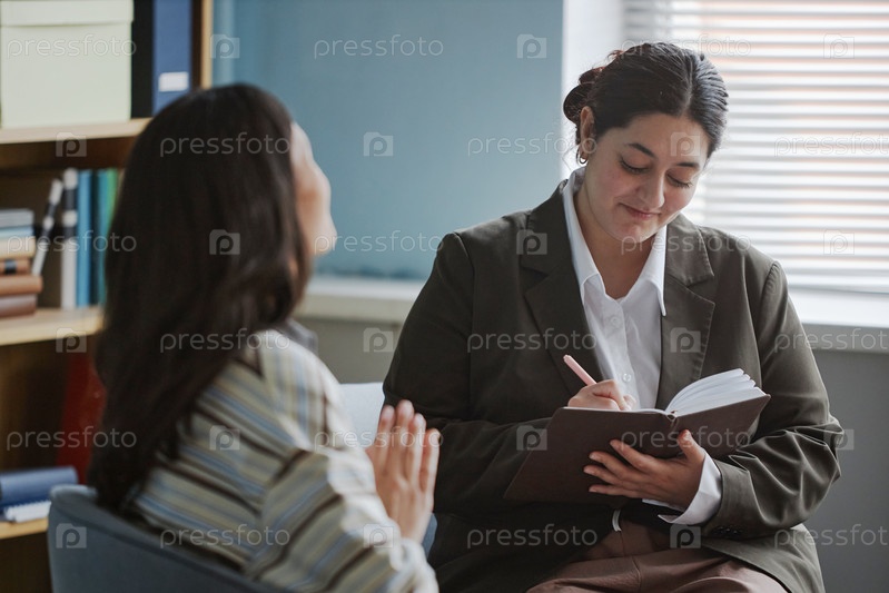 Подростковая девочка делится чувствами с женским консультантом во время сеанса терапии