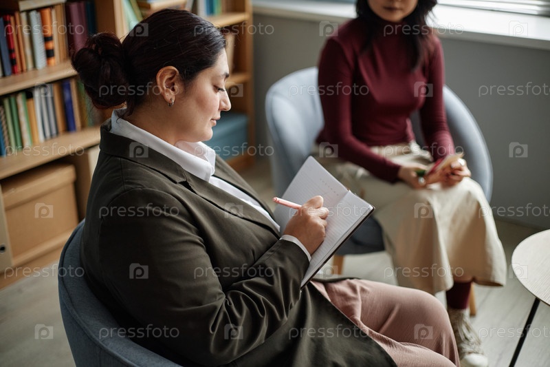 Женская консультантка направляет азиатскую девочку-подростка во время консультационной сессии