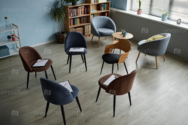 Круг стульев организован для предстоящей встречи группы по консультированию подростков