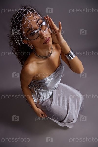 Портрет молодой женщины в аксессуарах, позирующей уверенно