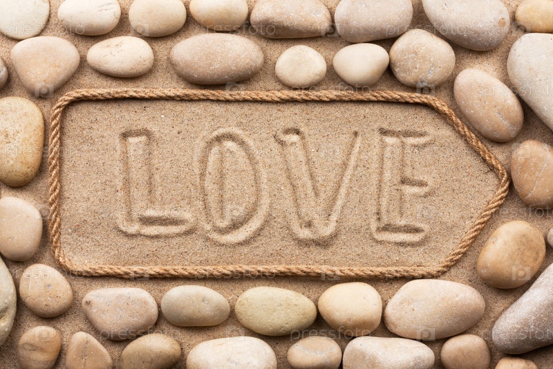 Показатель из веревки с надписью Любовь белым камнем