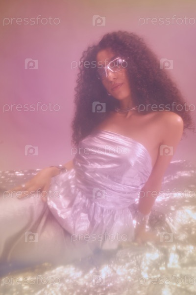 Молодая женщина уверенно позирует во время фотосессии