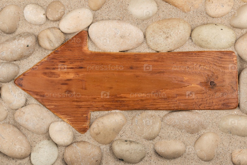 Классическая деревянная стрела и белые камни в песке