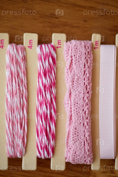 Разнообразные розовые ребер и ткани, расположенные на картонных держателях