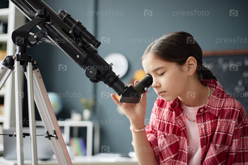 Девятнадцать девушек наблюдают за ночным небом через телескоп в помещении Pr