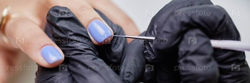 Header of Женщина, получающая маникюр от Female Nail Tech Applying Gel Polish