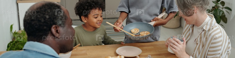 Семья наслаждается качественным временем во время завтрака