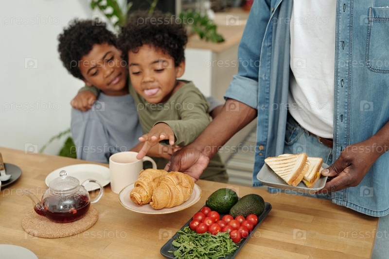 Сервирование еды для двух детей Человек