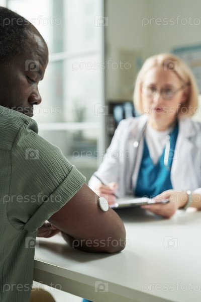 Чернокожий мужчина среднего возраста консультирует женщину-врача о управлении диабетом
