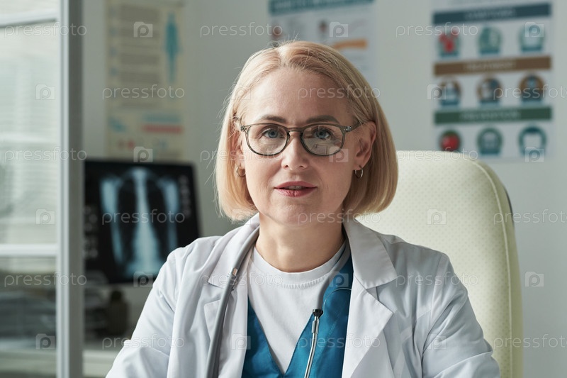 Портрет женщины среднего возраста, консультирующей пациента с диабетом