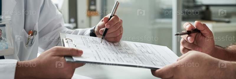 Мужчина среднего возраста консультирует врача о диабете во время медицинской встречи