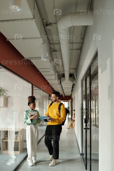 Обсуждение творческого проекта Молодая чернокожая женщина и молодой мужчина в коворкинг-пространстве