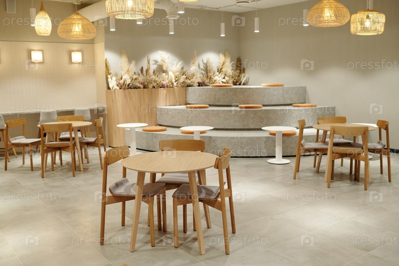Показание современного творческого коворкинг-пространства с минималистической деревянной мебелью