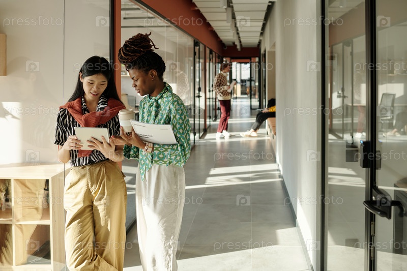Сотрудничество в творческом коворкинг-пространстве молодой взрослой азиатской женщины и чернокожей женщины