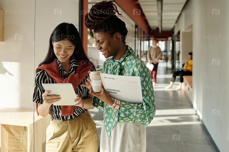Обзор цифровой презентации Молодая азиатская женщина и чернокожая женщина в коворкинге