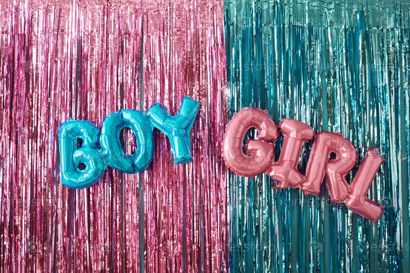 Голубой мальчик и розовая девочка воздушные шары, украшающие пол раскрывают партийный фон