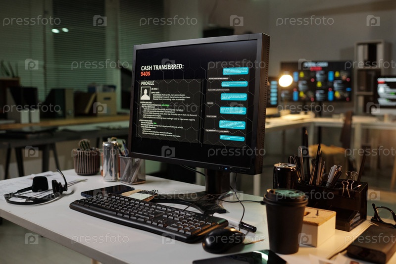 Ключевое изображение компьютерного монитора, отображающего мошеннический колл-центр Мошенническая деятельность