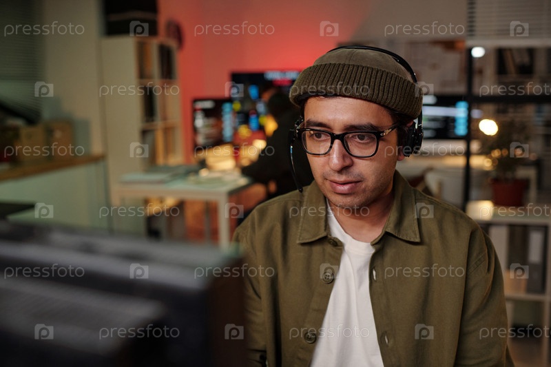 Wearing Headset Operating Scam Call Center Компьютерный человек