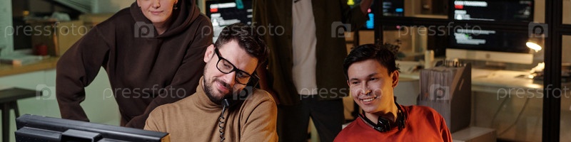 Мультиэтнические молодые взрослые, работающие с мошенническим колл-центром в офисной среде