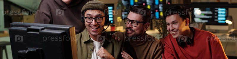 Разнообразные молодые взрослые мужчины сотрудничают на рабочих станциях Scam Call Center