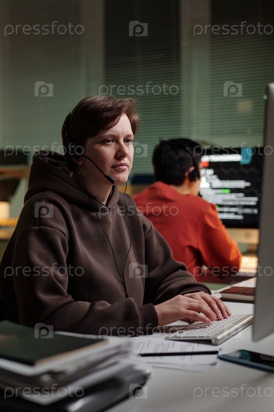Операционный мошеннический колл-центр Woman Computer Wearing Headset