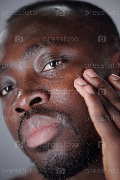 Портрет чернокожего человека, касающегося его щеки