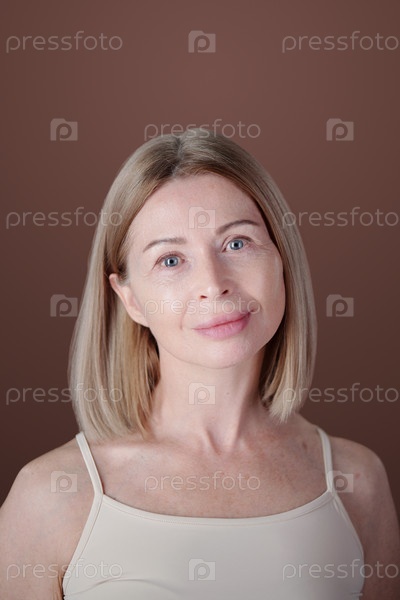 Портрет блондинки, смотрящей на камеру с мягкой улыбкой