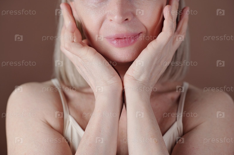 Старшая женщина прикасается к лицу