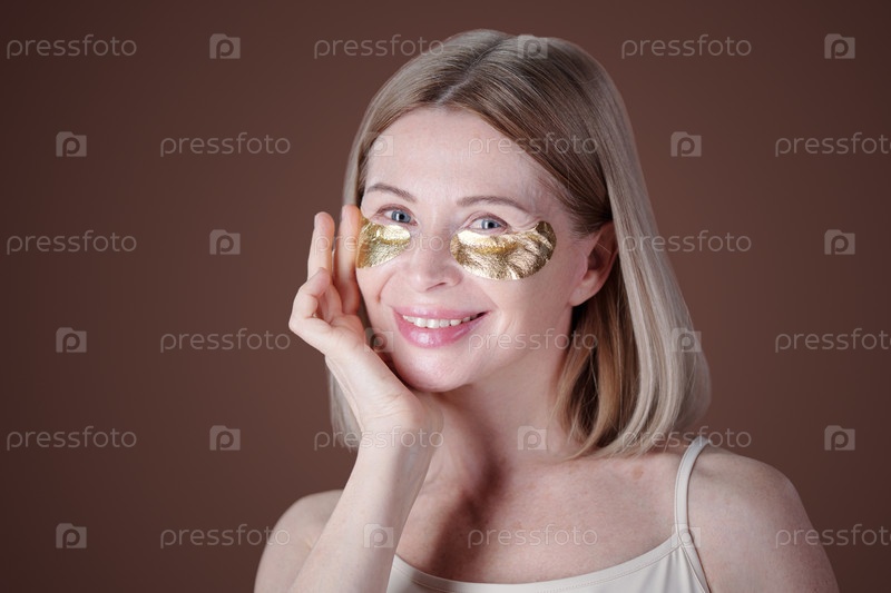 Портрет улыбающейся леди, носящей пластыри под глазами