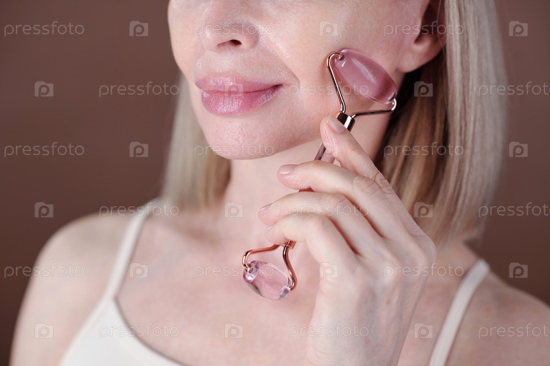 Женская рутина по уходу за кожей с устройством ролика для лица