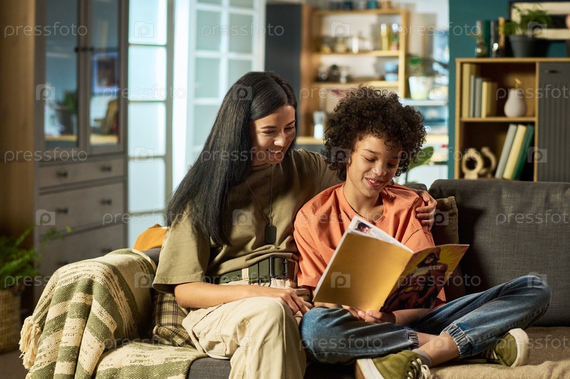 Военная женщина проводит время с мультиэтническими детьми Книга чтения