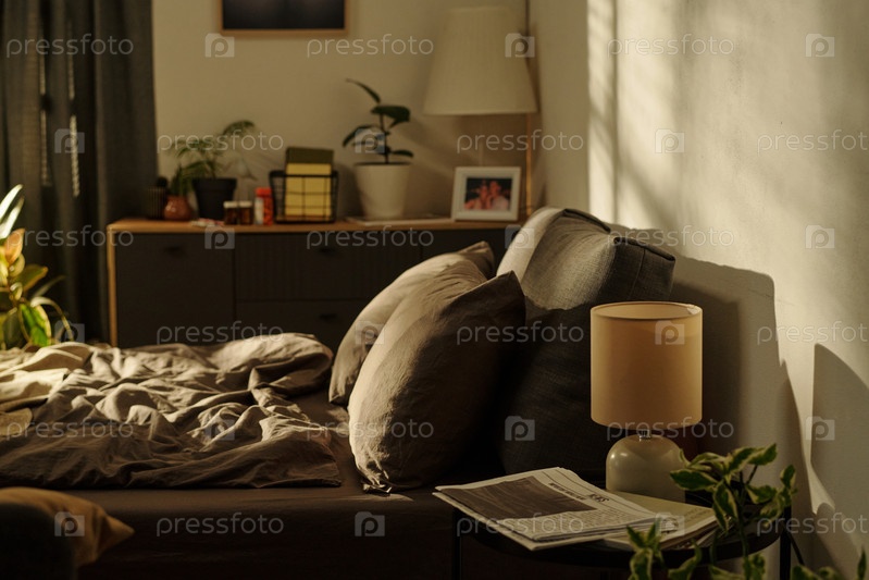 Пустая незаготовленная кровать в солнечной комнате предполагает семейный конфликт