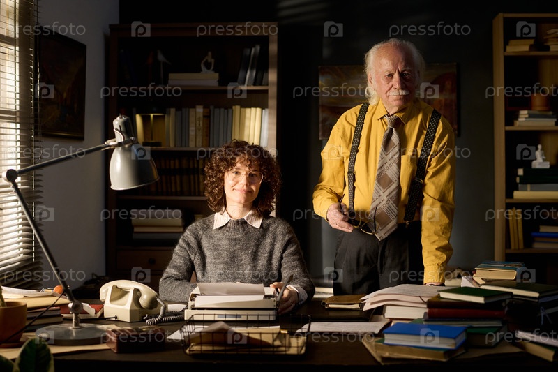 Старший мужчина и молодая взрослая женщина, работающие в офисе
