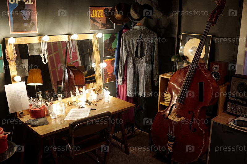 Джаз-музыканты готовятся за кулисы перед выступлением в музыкальном зале