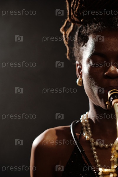 Музыкант-женщина погружается в джазовый саксофон Young Saxophone Performance on Stage
