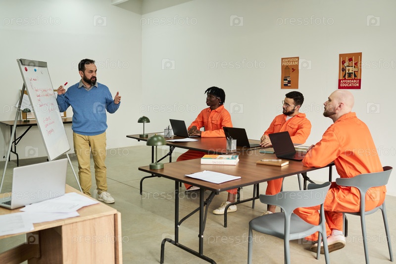 Обучение мультиэтнических взрослых мужчин в тюремном классе