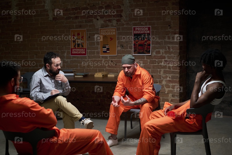 Мультиэтническая группа заключенных мужчин, участвующих в реабилитационной дискуссии