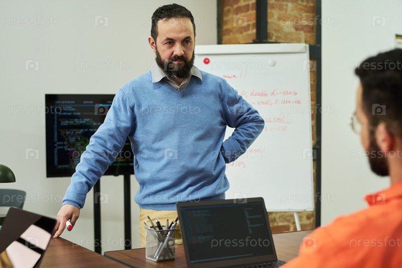 Мужчина средних лет преподает заключенному в классной комнате во время урока
