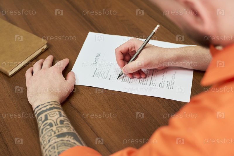 Молодой взрослый мужчина заполняет резюме во время тюремной образовательной программы