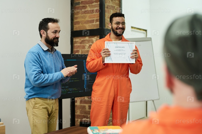 Молодой взрослый мужчина получает сертификат во время тюремной образовательной программы