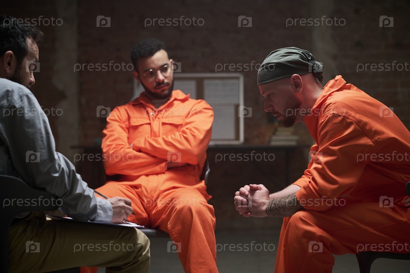 Мультиэтнические молодые взрослые заключенные выражают эмоции во время тюремного консультирования