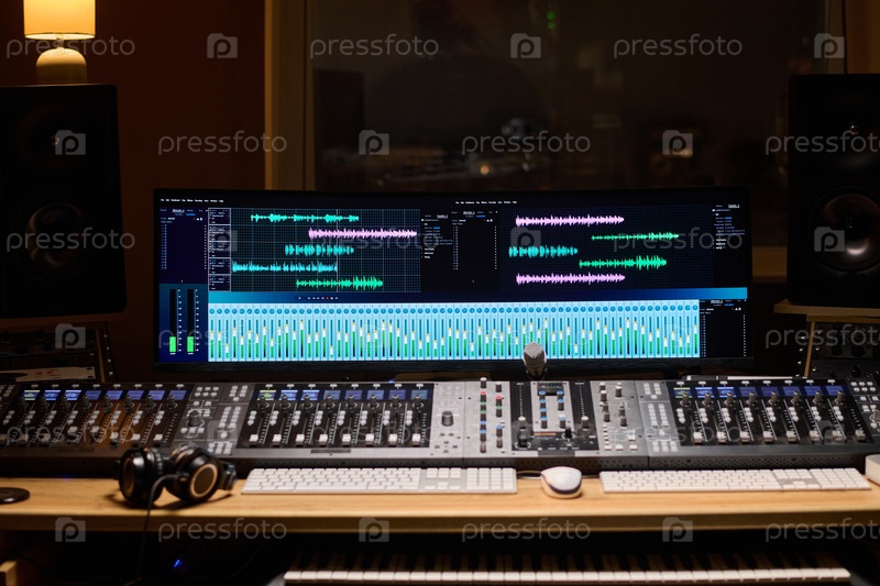 Профессиональный аудиоинженер смешивает треки в современной студии звукозаписи