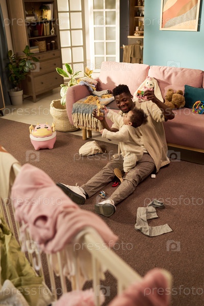 Юный чернокожий отец проводит качественное время, играя с дочерью дома