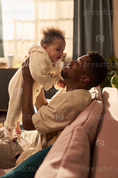 Молодой чернокожий отец, связанный с младенческим ребенком во время отпуска по отцовству дома