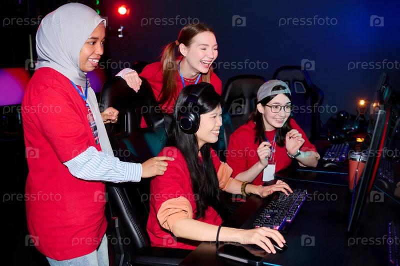 Разнообразные команды девочек-подростков сотрудничают и соревнуются в турнирах по киберспорту