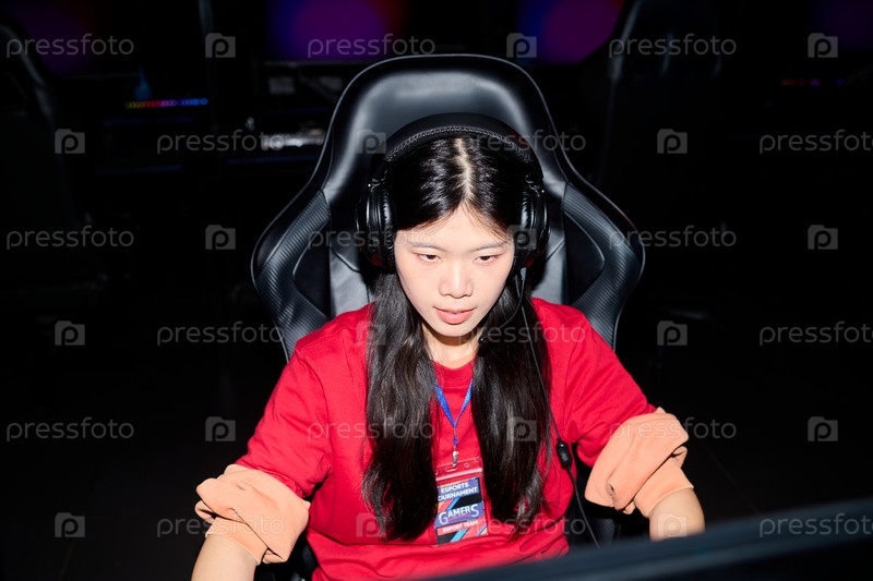 Портрет азиатской подростковой девушки-геймера, участвующей в турнире по киберспорту онлайн
