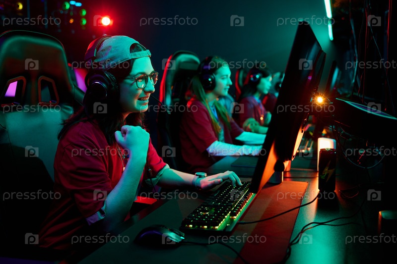 Команда подростковых девочек сотрудничает во время турнира по азартным играм