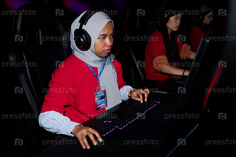 Молодые мультиэтнические игроки-женщины, участвующие в турнире по киберспорту на Gaming Arena