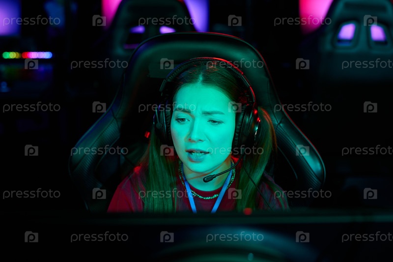 Портрет девочки-игрока из подросткового возраста, участвующей в турнире по киберспорту