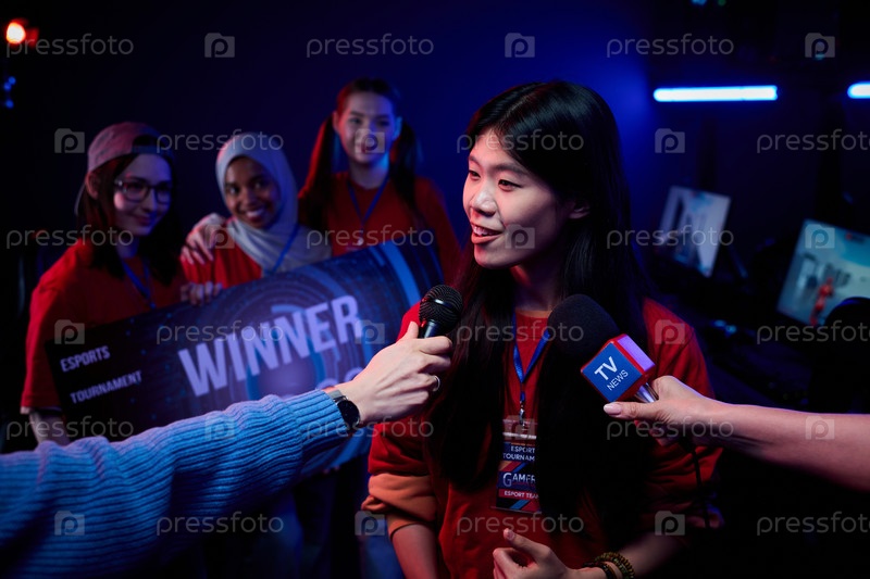 Asian Teenage Girl Gamer Team Celebrating Winning Esports Tournament Интервью с девушкой-игроком из Азии, которая празднует победу в турнире по киберспорту